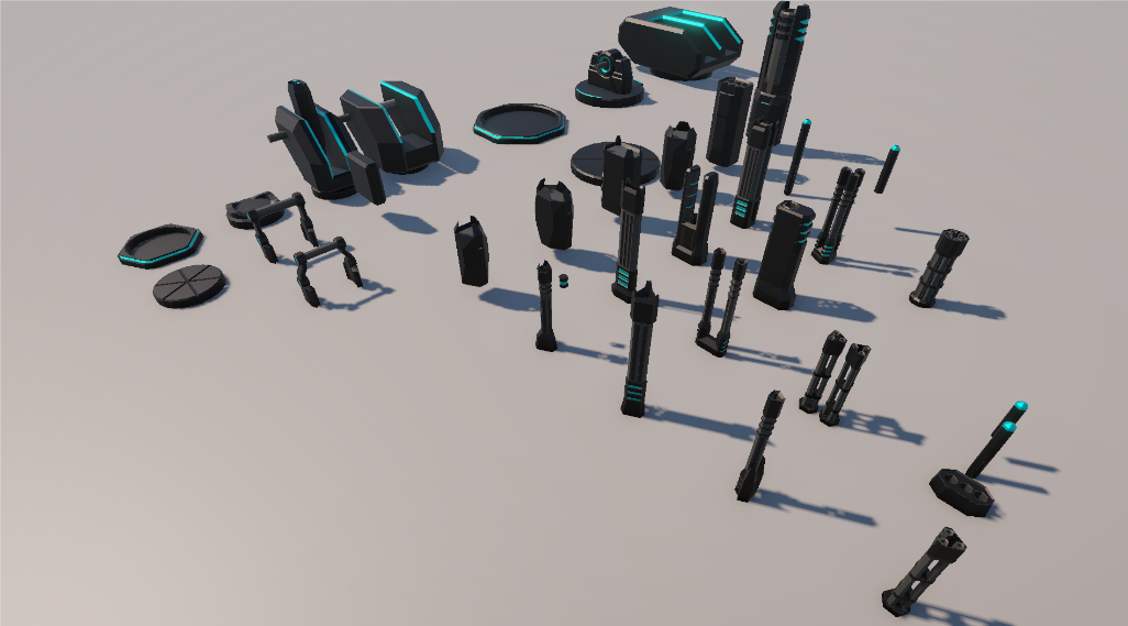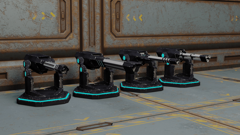 This asset is a modular, low-poly sci-fi sentry with up to 75 possible combinations (and even more if you add additional turret variations to the modules that support multiple weapons).